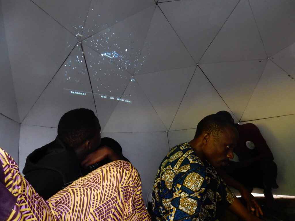 Mobile Astronomy Village (MAV) aims to develop astronomy and science education in Benin through planetarium sessions in primary and secondary schools and university centers. The team hopes it will arouse scientific curiosity among young people (including girls), a taste for more advanced studies, and the creation of astronomy clubs.