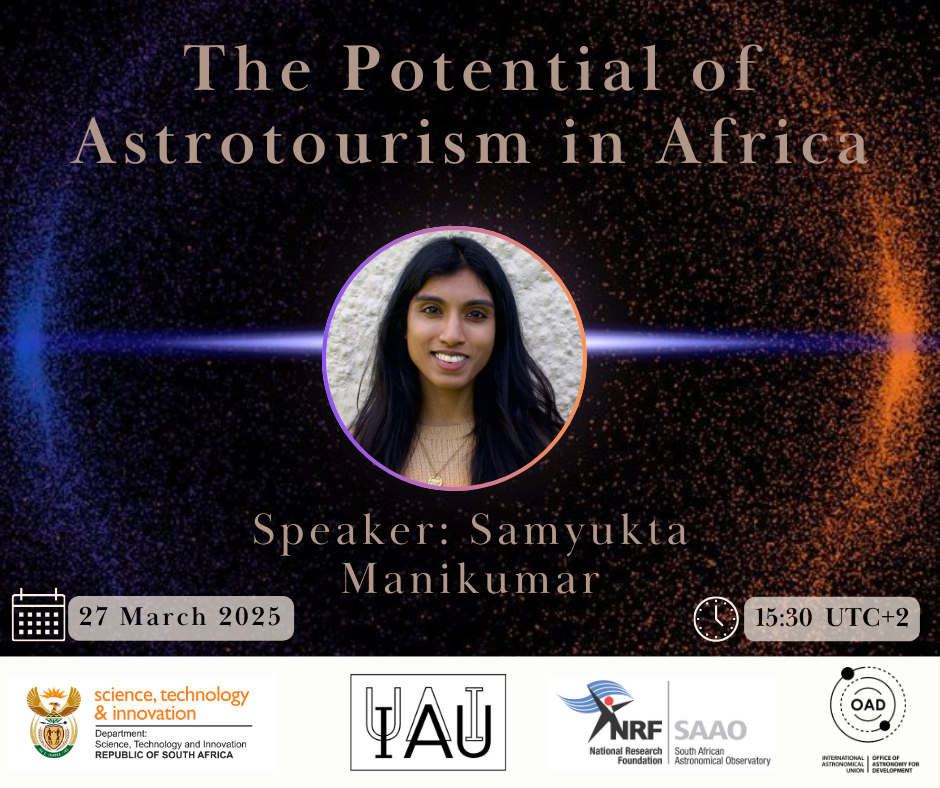 OAD remote fellow, Samyukta Manikumar will be giving a talk at the African Astronomical Society (AfAS) Conference and General Assembly 2025 titled “The Potential of Astrotourism in Africa”. Below is the abstract of the talk:
